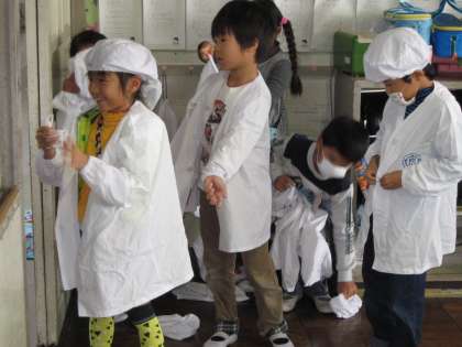 給食当番のエプロンを早く身につけることができるようになりました。4月の頃は、エプロンを着たり、脱いだりすることに時間がかかりました。2学期に入り、手際よくできるようになりました。着替えた後は、廊下に並んでみんなでワゴンを取りに行きます。ワゴンの運転も上手になりました。これからもみんなで協力して、当番活動を頑張っていきたいです。