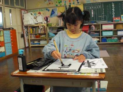 手本をよく見て、一画の長さや間隔のとり方に気をつけて書きました。