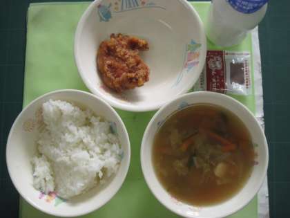 ごはん ちゅうかス−プ とりにくのからあげ ココアパウダ− 牛乳