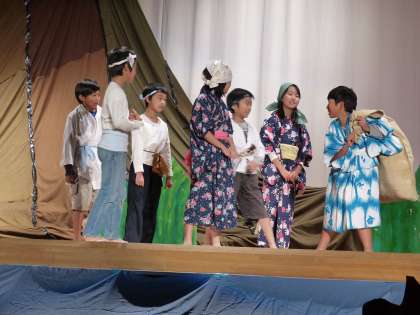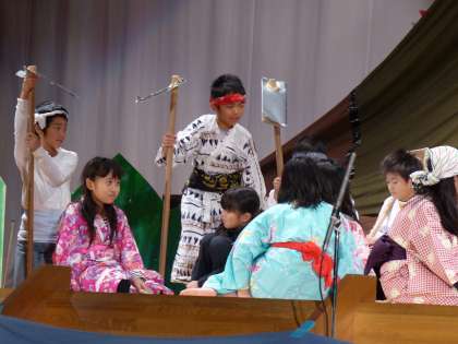 今日は、4年生の劇を全校のみんなに見てもらう児童鑑賞会でした。
