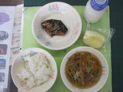 ごはん さわにわん さばのこうみだれ りんご 牛乳
