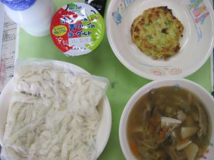 あんかけきしめんをおいしそうに、すすっていました。いちのみやのねぎやきは、お好み焼きのようで、喜んで食べていました。ヨ−グルトは、りんご味でとてもおいしかったです。