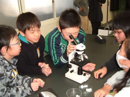 今日は、氷砂糖を作っている会社の方に来ていただきました。そして、5年生の3クラス順番に、氷砂糖を使って理科の「ものの溶け方」の授業をしていただきました。氷砂糖の作り方や浸透圧について学び、砂糖の結晶を顕微鏡で見ました。