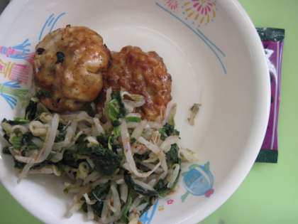 ごはん ごまたまちゅうかス−プ にらまんじゅう ほうれんそうのおかかあえ