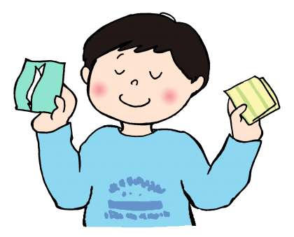 かぜの流行とともに、花粉症のきせつにもなってきます。鼻をかむためには、はな紙が必要です。しっかり身につけましょう。
