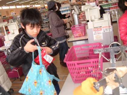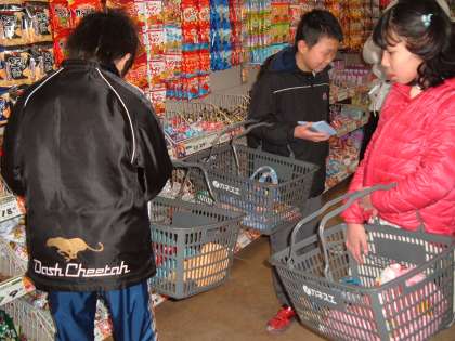 校外学習に持っていくおやつをスーパーに買いに行きました。