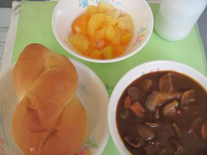 久しぶりのパンをおいしくいただきました。あたたかいビ−フシチュ−もとてもおいしかったです。フル−ツも大喜びでした。