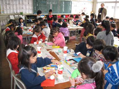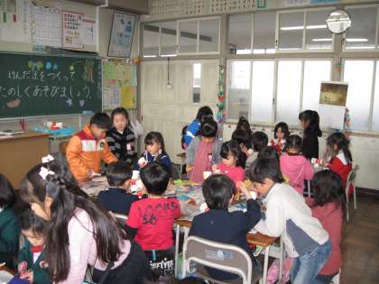 今日、2時間目に新1年生のみんなと一緒に遊びました。まず、けん玉に絵を描いたり、折り紙を貼ったりしました。けん玉の飾り付けが完成したら、一緒に遊びました。みんな上手にけん玉をしていました。緊張して、ドキドキしたけれど、大変楽しく過ごしました。そして、2年生になる喜びと自覚を高めることができました。