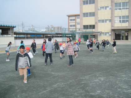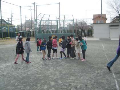 今日も縦割り班でのふれあい遊びが行われました。今日は1組班です。最初に6年生が遊びの説明をし、その後みんなで楽しく遊びました。楽しそうな声が響き渡っていました。