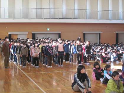 今朝の児童朝礼で、エコスクール認定証をいただきました。4年生の代表が、一宮市の環境部清掃対策課の方から直接いただきました。星3つの評価をいただき、本校の取り組みを褒めていただきました。