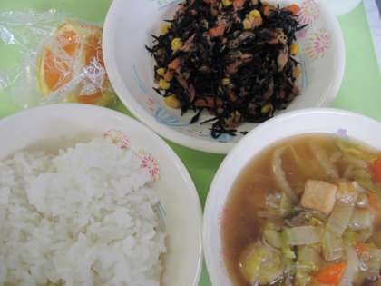 ひじきの炒め煮が出て、みんな喜んで食べていました。聞くところによると他地区では、ひじきの給食は、あまり人気がないそうです。一宮地区では、人気メニュ−の一つです。