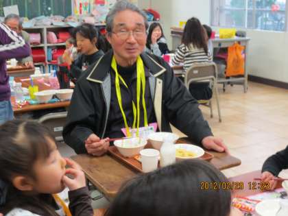 3/1 見守り隊の方と一緒に給食(2年生)