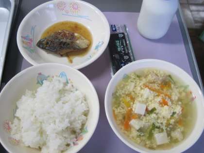 ごはん かきたまじる さばのおかかに あじつけのり 牛乳