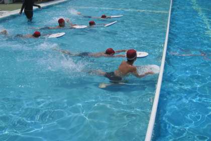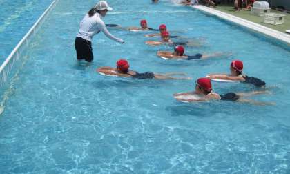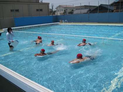 3時間目にプールに入りました。曇っていた空も少しずつ日が射し気持ちよく泳げました。今日は、ビート板を使ってバタ足の練習をしました。