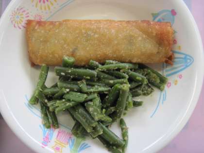 いんげん豆のごまあえも、苦手な子もおいしそうに食べていました。
