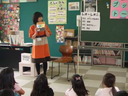 2年生では、今週の火曜日と今日、ブックトークがありました。司書の方に、国語の時間に学習した「スイミー」の作者レオ=レオ二の本「うさぎのにわ」「じぶんだけのいろ」を読んでもらいました。「あいうえおのき」と「ぼくのだ!わたしのよ!」は、お話の途中まで読んでもらいました。たくさんの子が、早くお話の続きが知りたいと、昼放課になかよしホールに本を借りに行きました。読書月間は終わりましたが、これからもたくさん本を読んでほしいと思います。