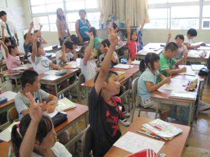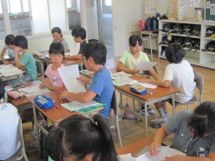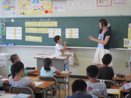 算数の授業で「1と0.1、0.01、0.001の関係を調べよう」の勉強をしました。数直線のめもりを使って、整数と小数の関係を理解しました。