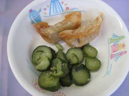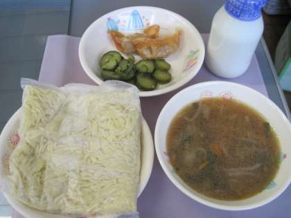 ちゅうかめん スタミナラ−メン あげギョ−ザ きゅうりのナムル 牛乳