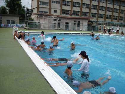本日は午後から水泳の泳力向上指導教室が行われました。3年生から6年生まで、70余名の児童がそれぞれの学年の目標に向けて1時間余りの練習を行いました。
