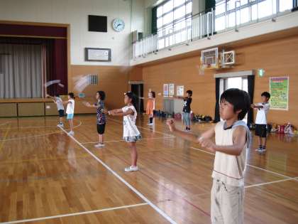 また、5年生の児童がキャンプに向けてトーチトワリングの練習をしたり、レクレーションで行うゲームを考えたりしてがんばっていました。