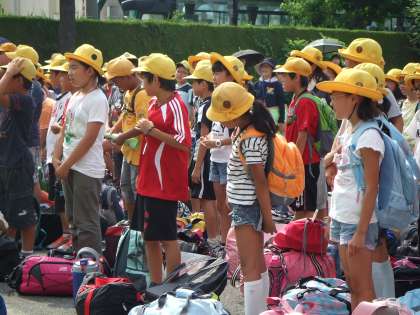 5年生106名が、元気に郡上八幡自然園に向けて出発しました。自然の中での体験活動や集団生活を通して、心身を鍛えるとともに、豊かな心を育ててほしいと思います。仲間と助け合い、楽しい思い出をたくさん作ってほしいと思います。