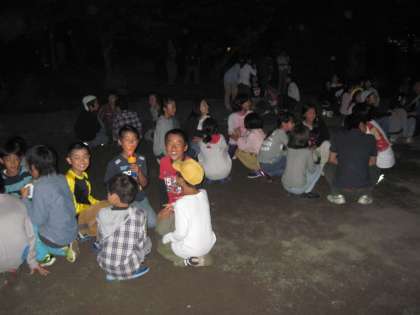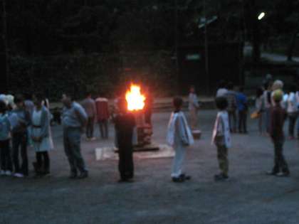 キャンプファイヤーの親睦の火の場面です。各クラスのスタンやゲームを楽しみました。