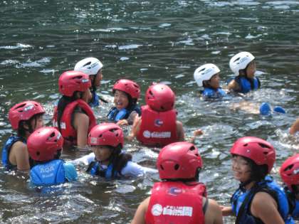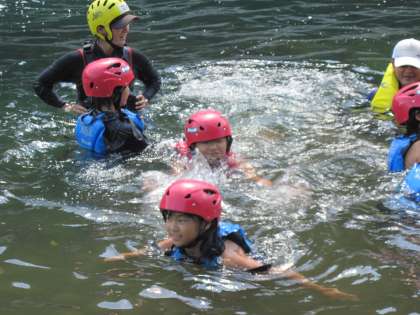 トライアドベンチャーでの川遊びの様子です。たいへん暑くなり絶好の川遊び日和となりました。子どもたちは大はしゃぎで川遊びを楽しみました。