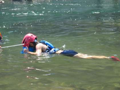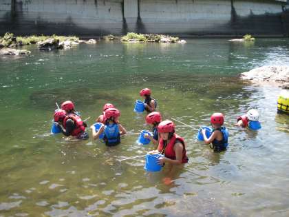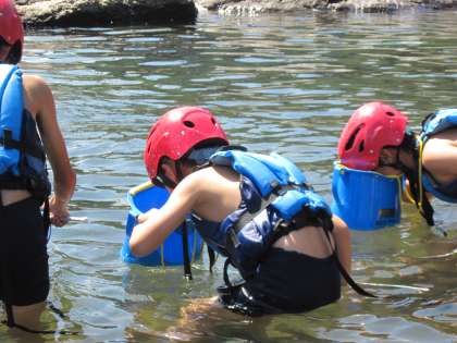 トライアドベンチャーでの生き物調査隊の様子です。川の中にはいろいろな魚がいることがよくわかります。子どもたちは、そんな川の中を楽しみました。