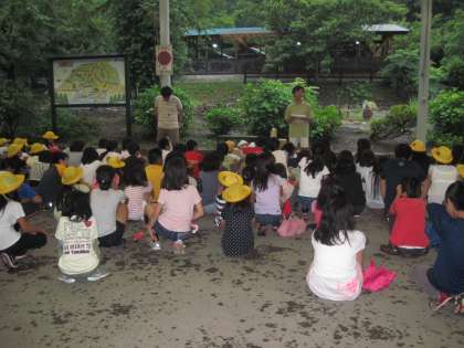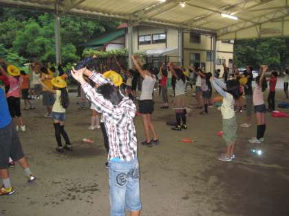 おはようございます。最終日の朝は、あいにくの雨です。朝のつどいはテント広場で行いました。みんな元気です。