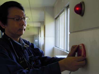 今日は、学校中の自動火災報知設備の点検でした。暑い中、すべての部屋を回り、報知器がきちんと作動するか点検をしてもらいました。