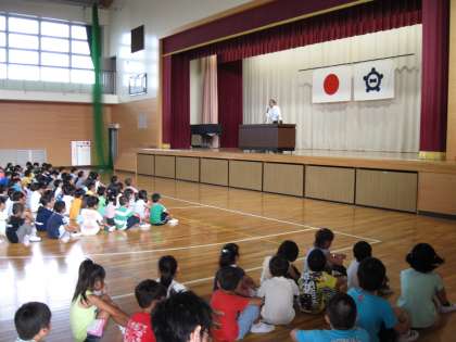 先日行われたミニバスケットボール大会での向山小の選手の一試合ごとに成長していった姿を通して、学ぶということはこういうことですと出場選手のがんばりを讃えました。