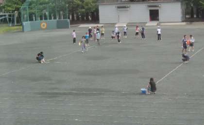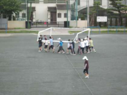 授業後、職員作業を行いました。運動会の練習にむけて、サッカーゴールを移動させ、グランドにポイントを打ち、ラインを引きました。子どもたちが練習に集中できるよう、まず環境を整えました。