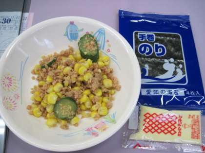 大きな手巻きのりに、ごはんや具をのせて、楽しくいただきました。