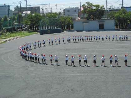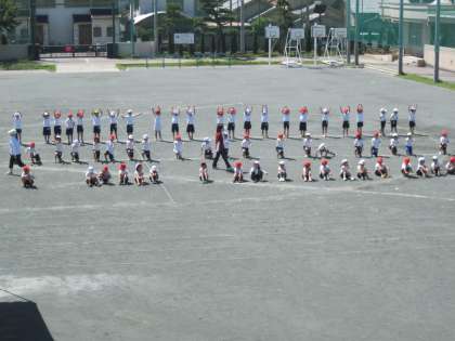 運動会の1・2年生の表現は、「みんなでNAMEKO!」 です。今日は、初めて運動場で練習を行いました。最初に位置を覚え、その後、音楽に合わせ踊りました。これからしっかり練習して、上手になっていくのが楽しみです。