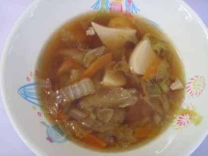 ごもくうどんをおいしくいただきました。ごへいもちのみその味を楽しんでいました。