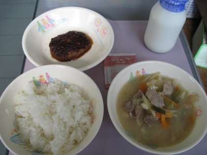 ぶたじるもハンバ−グもおいしくいただきました。