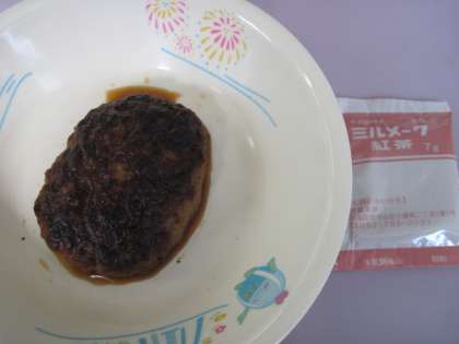 ごはん ぶたじる ハンバ−グのレモンソ−スかけ こうちゃパウダ− 牛乳