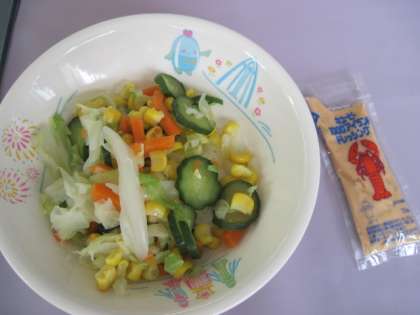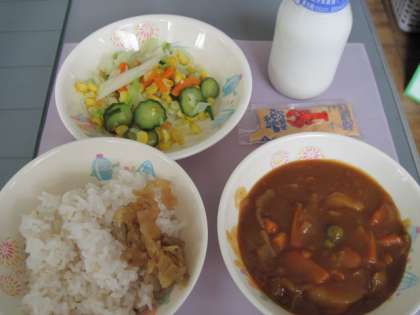 カレ−ライスをおいしくいただきました。サラダもドレッシングの味がおいしくて、うれしそうに食べていました。