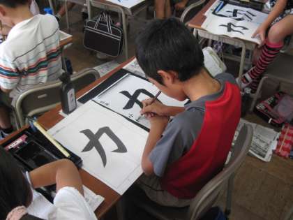 毛筆で「力」を清書しました。おれとはねの筆づかいに気をつけて書きました。