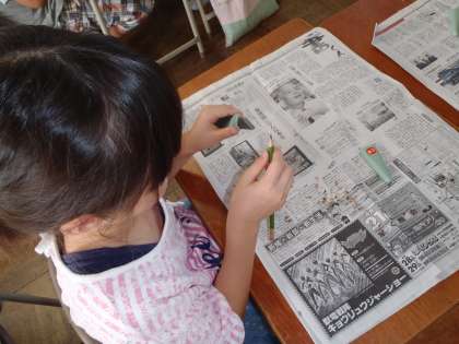 初めは、ぎこちない様子でしたが、慣れてくると鉛筆の芯をとがらせようと上手に小刀を使いこなしていました。