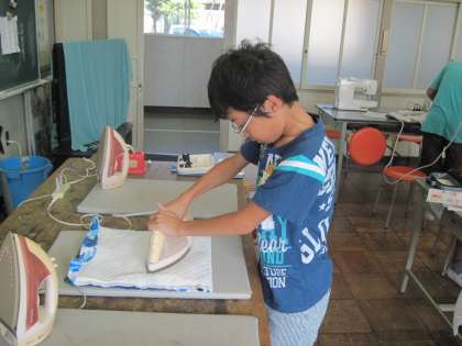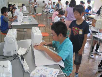 6年生は、今家庭科でナップサックを作っています。ミシンを使って縫っています。出来上がりが楽しみです。