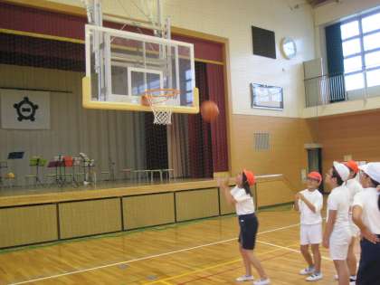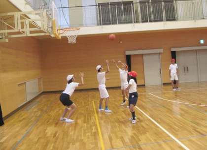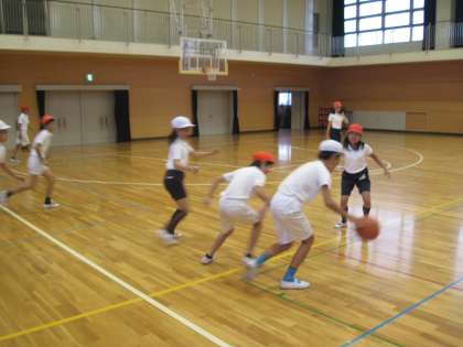 体育でミニバスケットボールを行いました。シュート練習をした後、ゲームを楽しみました。