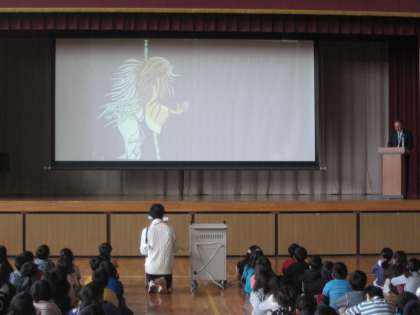 今朝は、校長先生から人権に関する講話がありました。最初に「花さき山」の読み聞かせがありました。その後「人のためになることをすると、何か心が温かくなります。たぶんそれは、心の中にある花さき山にそっと花が咲いたからです。向山小学校では、12月2日から9日までを人権週間として、いろいろな取り組みをします。この期間は、自分を大切にするのと同じように他の人も大切にすることを特に考える期間です。人のためになること、人が喜ぶことをいっぱいして、心の中にある花さき山にいっぱい花を咲かせてください。」という内容の話がありました。