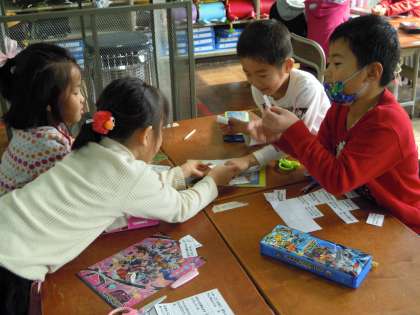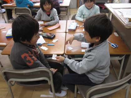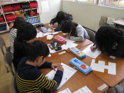 向山小学校では、12/2〜12/9まで人権週間となっています。今日、1年生では『友達のよいところ見つけ』をしました。「いつも手を挙げて大きな声で発表しているね。」「この間、転んだ時に優しく“大丈夫?”と言ってくれてありがとう。うれしかったよ。」と、気持ちを伝えながら、よいところカードを渡しました。カードをもらうと、みんな笑顔で嬉しそうでした。