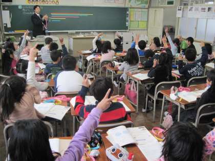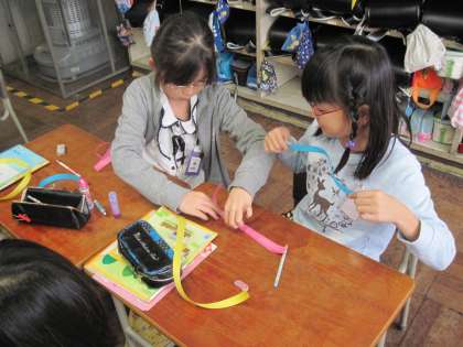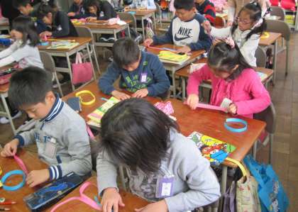 算数で「はしたの大きさの表し方」の勉強をしました。紙テープを使って、1mよりも長い部分の長さの表し方を学びました。
