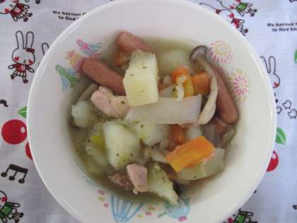 具だくさんのポトフを おいしくいただきました。いかリングもおいしくいただきました。