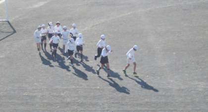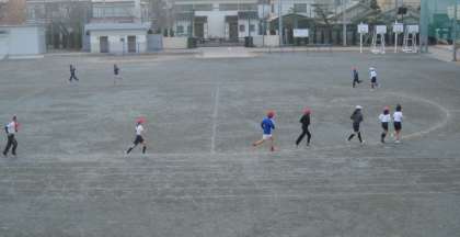 寒さに負けず持久走を行いました。目標タイムを設定し、ペースを守って走りました。