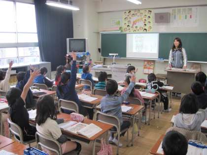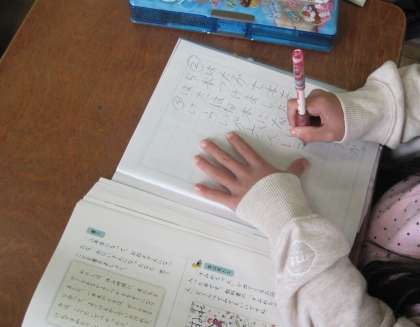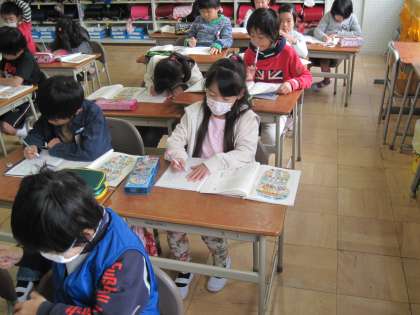 国語の時間に、漢字を使って問題を作りました。教科書の絵に合うように問題を考え、漢字を使いました。
