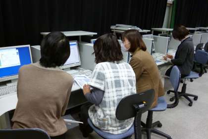 12.24 パソコン研修会 公開日 2013/12/24 更新日 2013/12/24 学校ニュ−ス 冬休みが始まりました。職員は3学期に向けて教材研究をしたり、教室整備をしたりしています。パソコン室では、パソコンの自主研修会が行われました。
