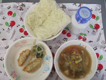 ちゅうかめん ごもくラ−メン あげギョ−ザ もやしのナムル 牛乳